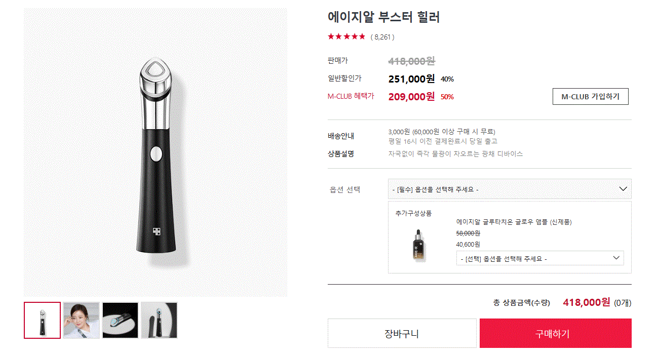 현재 한 달 정도 사용했는데 기미가 아주 쏙 들어가거나 모공이 아주 없어졌다고는 말 못 드리지만 세수할 때 손에 닿는 피부 느낌이 정말 달라졌고 얼굴에 사라졌던 광이 돌기 시작했어요 저처럼 피부과 시술이 부담스럽다 하시는 분들은 메디큐브 부스터 힐러 정말 강추합니다. 에이지알 한번 사면 못 헤어 나온다던 어떤 주부님 말씀 너무 알 것 같아요 저 다음 거 에어샷 구매하면 또 후기 남길게요~ 부스터 힐러 구매 고민하시는 분들 어차피 들일 거 더 빨리 들여서 하루라도 사용하시는 게 돈 버시는 거라는 거 아시죠~?!