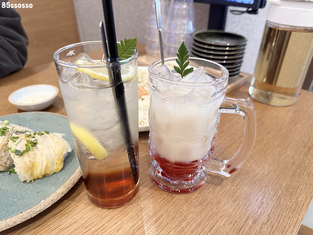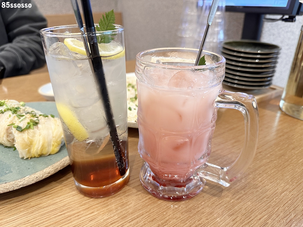 운전해야 하는 신랑은 왼쪽 매실에이드, 오늘을 아침부터 즐기련다 마음먹고 나온 저는 오른쪽 오미자 막걸리하이볼을 주문했습니다. 퓨전 한식에 막걸리 너무 잘 어울리니 한잔씩 꼭 드셔보셨으면 좋겠어요