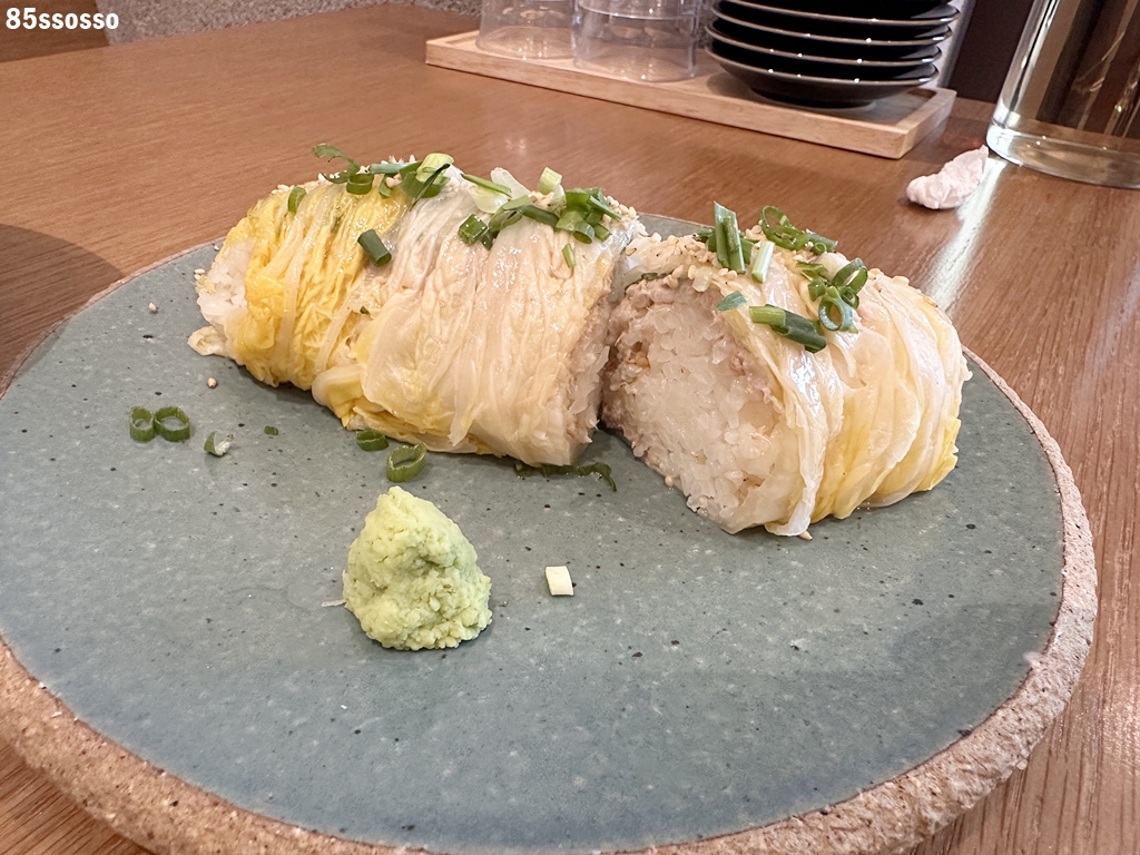 마요네즈 참치 밥에 묵은지로 감싸서 잘라 나오는 메뉴인데 누구나 아는 그런 맛인데 자꾸 생각나는 메뉴입니다. 집에 와서도 수원 스타필드 금금 묵은지 참치말이 메뉴가 너무 생각나더라고요. 라면에 김밥처럼 국수에 밥 하나도 드셔야죠 우리에겐 국수 배 밥 배 따로 있잖아요~ 전 계란김밥 보다 이 메뉴가 더 맛있었어요