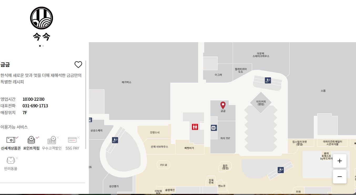 수원 스타필드를 처음 방문하고 워낙 넓기 때문에 매장 찾는 게 쉽지만은 않았어요 수원스타필드 7층에 식당가들이 모여있는 잇토피아로 들어가셔서 맨 끝으로 가세요 간판이름 슥슥 아닙니다. 전 금금을 찾는데 큰 글씨만 보고는 여기가 맞나 잠깐 멈칫했었어요... 슥슥 아니고 금금 ^^